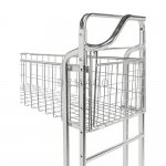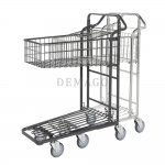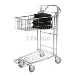 Wózek sklepowy/magazynowy z koszem. Zastosowano w nim 4 sztuki kół obrotowych bez hamulców. Nośność całego wózka wynosi 300 kg przy jego wadze wynoszącej 20 kg. Wózek został ocynkowany galwanicznie.