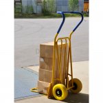 Klasyczny solidny wózek z kołami z pianki o średnicy 260 mm. Malowana proszkowo specjalna, ergonomiczna rękojeść, która z łatwością umożliwia różne pozycje chwytu.