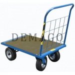 Ręczny wózek platformowy STACH 5 z jedną poręczą i podłogą 600x1000 mm z wodoodpornej płyty, na pneumatycznym ogumieniu. Wózek czterokołowy STACH V jest urządzeniem transportu wewnętrznego dla rolnictwa, ogrodnictwa, magazynu, przetwórni itp. Przeznaczony jest do przewożenia produktów i materiałów w opakowaniach typu skrzynie, kartony, worki, pojemniki itp.