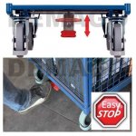 Zestaw kół: Ø 125 x 32 mm, z szarej, niebrudzącej podłoże termoplastycznej gumy, 2 koła obrotowe i 2 koła stałe, łożyskowane kulkowo, centralny hamulec na dwa koła - EasySTOP, większe bezpieczeństwo dzięki osłonie stopy